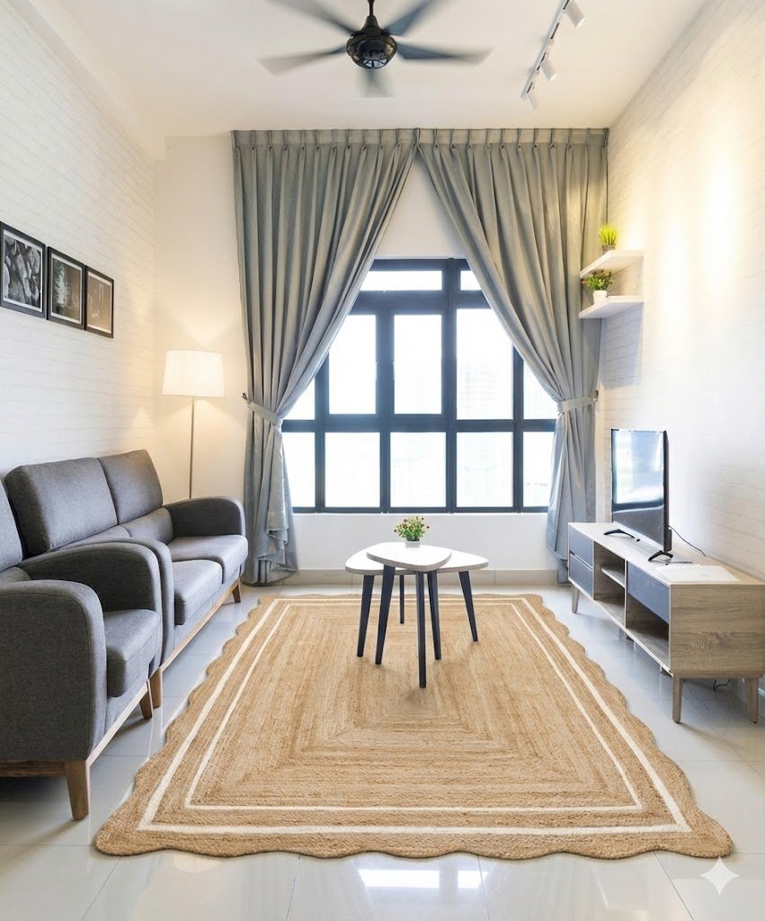 The “Ivory Trace” Scalloped Jute Rug